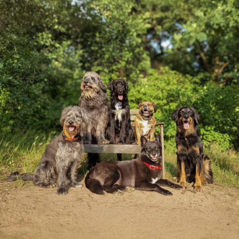 Feliz – Huskymix • Hulk – Pudelmix • Orange – Pudelmix • Visit -Bulldoggenmix • Noomi – Hovawart • Capitano – occhio Aussidor Airedale Terriermix